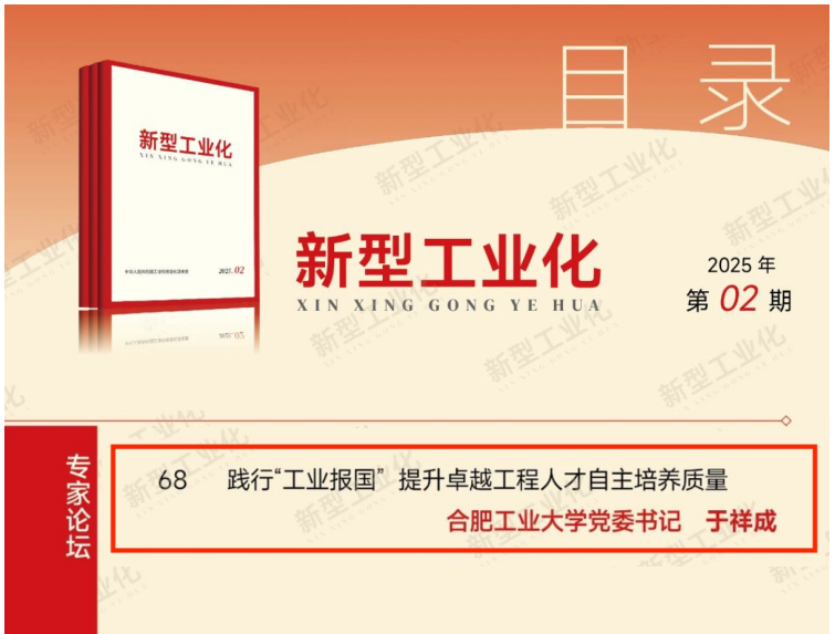 近日,工业和信息化部主管期刊《新型工业化》2025年第2期专家论坛栏目刊发校党委书记于祥成署名文章《践行“工业报国” 提升卓越工程人才自主培养质量》。文章指出,党的十八大以来,习近平总书记举旗定向、掌舵领航,就推进新型工业化的一系列重大理论和实践问题作出重要论述,提出一系列新思想新观点新论断,为推进新型工业化提供了行动指南和根本遵循。太阳集团城娱8722以服务新型工业化为目标,紧盯国家重大战略需求和区域经济社会发展新需要,深化招培改革、注重实践环节、共建导师队伍、集聚校地资源,着力培养造就更多卓越工程人才,为加快推进新型工业化提供新动力、作出新贡献。