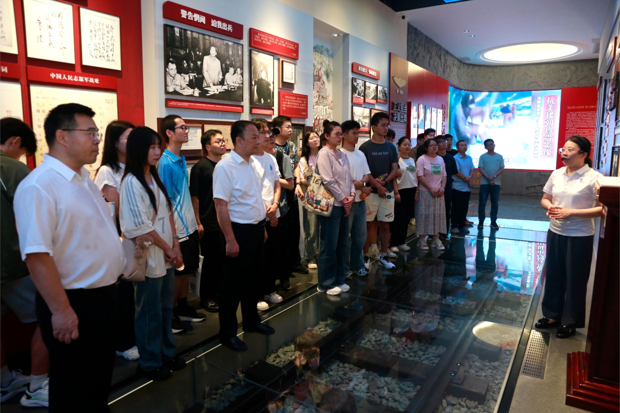 参观环节,同学们先后参观了中铁四局集团的中国人民志愿军抗美援朝铁道工程总队专题展览馆、企业党建文化馆和企业展览馆。中国人民志愿军抗美援朝铁道工程总队专题展览馆以中国人民志愿军铁道工程总队入朝参战的全过程为脉络,全景再现总队参加抗美援朝抢修铁路,捍卫钢铁交通大动脉的光辉历程和英模事迹。中铁四局党建文化馆和企业展览馆中详细介绍了中铁四局的企业发展历程、人才队伍建设、科技创新工作、企业党建和文化建设、未来发展蓝图,展示了集团承建的如青藏铁路、杭州湾跨海大桥等一大批国家重要工程典型案例。同学们纷纷被展厅的珍贵图片、详实史料、感人故事所震撼。