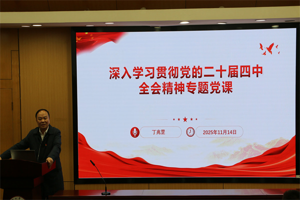 随后,丁兆罡书记以“深入学习贯彻党的二十届四中全会精神”为主题,为全体与会党员讲授了一堂内容丰富、思想深刻的专题党课。丁书记紧密结合tyc8722太阳集团的办学使命和学生的成长实际,引导大家深刻领会精神实质,把握核心要义,并要求大家将学习成果转化为推动学业进步、科研攻关和未来服务国家建设的强大动力。